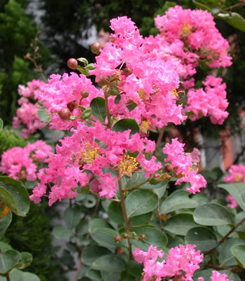 我們這兒所說的造景用樹,具有廣義的含義:是指所有在園林中應用于路旁、池邊、土丘、廊廳、房前屋后或與山石建筑相配,或在局部小景區三、五成組散植,從而形成有自然之趣布置的園林樹種。它們大多在枝干、花朵、果實、葉色或葉形等方面存在比較獨到的觀賞特性,在園林應用中能夠很好的與周邊環境相協調并創造美好的景致。紫薇作園林造景用樹時就需要充分考慮到應用場地的差異,以便選用不同樣式的造型與之相匹配。這里推薦幾種,如杯狀,開心形,叢球形,組合群栽以及亭、花瓶、花籃、牌坊、動物甚至幾何體等象形式造型。