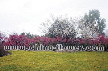 ▲梅花與草坪搭配最近幾年非常流行,在寬闊的草坪上配植梅樹,使得草坪不再單調,而且梅樹在綠草、藍天的映襯下,姿、色、韻盡顯。