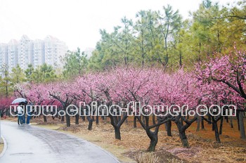 梅花神韻感人,暗香浮動,適于庭院、草坪、低山、石際及風景區弧植、叢植、群植、林植。在上海世紀公園,梅園的應用設計上采用了多種方式,取得了良好的景觀效果。