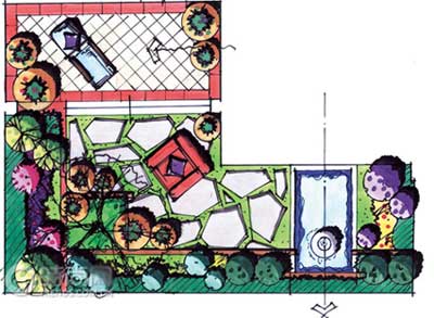 搭配方案二: 基礎花園:L形(植物區(qū)大于休閑區(qū))。