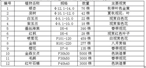 滬閔路“春景秋色”示范點(diǎn)主要植物材料一覽表: