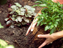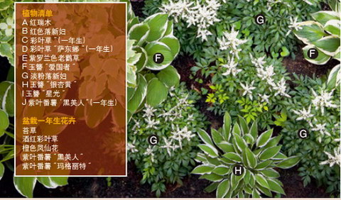 首先要清楚,光照對植物的選擇起到決定因素,土壤條件也很重要。大多數植物需要有良好的排水(避免積水)和豐富的營養供其成長。我們安裝了排水系統,并用混合肥料改善土壤,益生菌、腐熟牛糞和草炭成份有效地改良了土壤結構,增加了營養。結果是,植物在這個蔭涼的花壇里迅速而且健康地生長。剛買來的植物不必著急從盆里取出,先把植物擺在花床里,直到找到理想的形式,再將空盆留在那里,標出種植的位置。將植物移植到土壤中后鋪一層樹皮作為保護層,既能阻止雜草生長又增加美感,樹皮材料很輕,所以不會影響植物的生長。