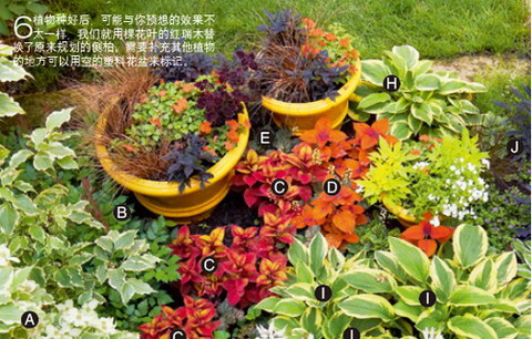 5.種植穴的深度要和植物原盆差不多,但是寬度要比原盆大一倍。植物種下后添回土壤,并輕輕拍實。最好從花壇的后部向前種植。先種主要的焦點植物,然后填充小一點的植物。