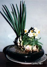 水仙球形鱗莖經(jīng)過選球、雕刻和組型,構(gòu)成具有特殊形態(tài)的園