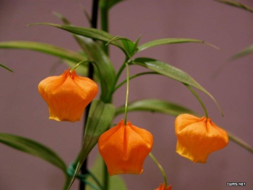 宮燈百合(Sandersoniaaurantiaca)為百合科球根花卉,由于其花形花色酷似中國宮燈而得名,開花時猶如一串串燈籠掛在花枝梗上,襯托綠色的葉片,極富特色。英文名為Christmasbells,因其花期在圣誕節之故。 宮燈百合花形柔美、花期長,瓶插壽命可達2-3周。實踐證明,無論是進行種球生產還是切花生產,均可獲得可觀的效益。宮燈百合是一個比較獨特的品種,其金黃色的鈴狀花是很好的見證。宮燈百合起源于夏季多雨,冬季溫度較低(此期百合處于自然休眠狀態),雨水相對少的潮濕草地。它能適應較寬幅度溫度和光照的變化,因此在溫帶和亞熱帶地區,室內外均可正常生長。