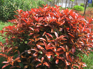 拉丁文:PhotiniaXfraseri 別名:酸葉石楠、紅羅檳、紅唇 科屬:薔薇科,石楠屬 生源地:華北大部、華東、華南及西南各省區。 光照:性喜強光照,也有很強的耐蔭能力 土壤環境:耐低溫,耐土壤瘠薄,有一定的耐鹽堿性和耐干旱能力 栽培期:春天 形態特征:常綠小喬木,高度可達12M,株形緊湊。葉革質、平滑,長橢圓形,邊緣有細鋸齒,新葉紅色。花期4-5月。梨果紅色,能延續至冬季,果期10月。原產日本,其園藝變種“Rubens”的嫩葉鮮紅色。 生長習性:喜溫暖、潮濕、陽光充足的環境。耐寒性強,能耐最低溫度-18℃。喜強光照,也有很強的耐蔭能力。適宜各類中肥土質。耐土壤瘠薄,有一定的耐鹽堿性和耐干旱能力。不耐水濕。紅葉石楠生長速度快,萌芽性強,耐修剪,易于移植,成形。性喜強光照,也有很強的耐蔭能力,但在直射光照下,色彩更為鮮艷。華東、華南、西南及黃河以南大部分地區都適宜種植,尤其長江流域生長良好。 繁育方式:全世界約有60種,主要產于亞洲東南部、東部和北美州的亞熱帶和溫帶地區。目前我國花木界常見的紅葉石楠有三個品種:紅羅賓(RedRobin)紅唇(RedTip)由石楠(PH.serrulata)與光葉石楠(PH.glabra)雜交而成,是當今世界上主要流行品種。魯賓斯(Rubens)由日本園藝家從光葉石楠中選育而成,株型較小,一般高3M左右。葉片相對較小,一般為9CM左右。葉片表面的角質層教薄,葉色亮紅但亮度程度不如'紅羅賓'。耐寒能力強,最低可達-18℃,適合在黃河流域以南的地區栽植。 綠化用途:紅葉石楠具有生長速度快,萌芽性強,耐修剪等特點,可根據園林需要進行多功能、多層次、立體式的應用,一至二年生的紅葉石楠可修剪成矮小灌木,在園林綠地中作為地被植物片植,或與其它色葉植物組合成各種圖案,紅葉時期,色彩對比非常顯著。紅葉石楠也可培育成獨干不明顯、叢生形的小喬木,群植成大型綠籬或幕墻,在居住、廠區綠地、街道或公路綠化隔離帶應用,當樹籬或幕墻一片火紅之際,非常艷麗,極具生機盎然之美。紅葉石楠還可培育成獨干、球形樹冠的喬木,在綠地中孤植,或作行道樹或盆栽后在門廊及室內布置。 紅葉石楠是薔薇科石楠屬雜交種的統稱,為常綠小喬木,因其有鮮紅色的新梢和嫩葉而得名。常見的有紅羅賓和紅唇兩個品種,其中紅羅賓葉色鮮艷奪目,觀賞性更佳。春秋兩季,紅葉石楠的新梢和嫩葉火紅,色彩艷麗持久,極具觀賞性。在夏季高溫時節,紅葉石楠的葉片轉為亮綠色,在炎炎夏日中給人以清新涼爽的感覺。 紅葉石楠有很強的生態適應性,不僅耐低溫、耐土壤瘠薄,還有一定的耐鹽堿性和耐干旱能力。紅葉石楠性喜強光,也有很強的耐陰能力,但在直射光照下,色彩更為鮮艷。 紅葉石楠生長速度快,且萌芽性強,耐修剪,可根據園林需要栽培成不同的樹形,在園林綠化上用途廣泛。1-2年生的紅葉石楠可修剪成矮小灌木,在園林綠地中作為地被植物片植,或與其他彩葉植物組合成各種圖案。紅葉石楠也可培育成獨干不明顯、叢生形的小喬木,群植成大型綠籬或幕墻應用在居住區、廠區綠地、街道或公路綠化隔離帶,春秋季樹籬或幕墻一片火紅,非常艷麗。紅葉石楠還可培育成獨干或球形樹冠的喬木,在綠地中孤植或做行道樹,或盆栽后放置在門廊及室內。紅葉石楠在國外特別是歐美和日本被譽為“紅葉綠籬之王”,已被廣泛應用。但在國內,紅葉石楠還是剛剛引進開發的樹種,尚處于種苗繁育階段,僅有少量種苗供應市場,還沒有大規格苗木供園林應用,遠遠不能滿足苗圃和園林工程應用的需求。