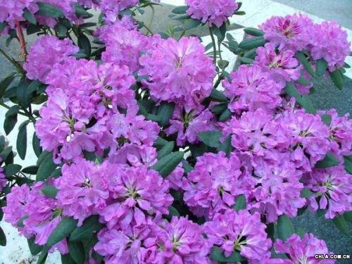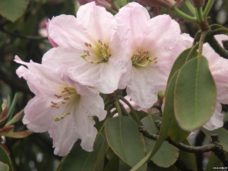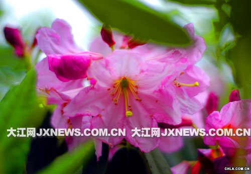 科屬: 杜鵑花科 形態特征: 天臺山云錦杜鵑,是一種常綠大灌木,高約四、五米,樹冠渾圓平整,主干分明,旁枝逸出,葉片革質,形似枇杷葉,正面墨綠油亮,背有黃色茸毛。每年立夏過后,頂生傘狀花序,待放的花苞則如荷箭。花朵盛開時,由7—13朵小花團簇一起而組成一朵朵大若碗口、嫵媚無比的花團,一樹千花,故又稱“千花杜鵑”。 一般花期在7天左右,花色有大紅、粉紅、白色和紫色等,間雜一起,形成一片繽紛奪目的“花海”,望之粉若芙蓉,姣若清荷,燦若云霞,聞之沁人心。其間又穿插著黃山松、柳杉、望春花等相伴而生。更顯現出萬綠叢中點點紅的美景。人在花中游,仿佛置身一幅碩大無比、色彩鮮明、格調清新的圖畫中。 每年5月間,進入華頂景區,云錦杜鵑在路邊、道旁、巖上、林間、坡地上,星星點點,叢叢簇簇,漫山遍野,似彩云灑落,主要成林分三大處,各有特色。歸云洞前千樹簇擁,花海一片;東茅蓬藥師庵則獨自佇立,或姐妹相處;拜經臺附近卻三五成群,叢叢簇簇,姿態萬千。 “翠岫從容出,名花次第逢。最憐紅躑躅,高映碧芙蓉。琪樹應同種,桃源許并。無人移上苑,空置白云封。”清初張聯元這首《杜鵑花》詩將別名紅躑躅的云錦杜鵑與仙界琪樹、碧桃花相比,既感慨它沒有收入皇家花園,也說只有在白云繚繞中觀花,才能有一種超脫凡塵之感。 補充知識: 一 關于云錦杜鵑 東晉孫綽在《游天臺山賦》中贊美天臺山“八桂森挺以凌霜,五芝含秀而晨敷……建木滅景於千尋,琪樹璀璨而垂珠”,良好的生態環境和人為積極保護,使天臺山許多的古木名花繁衍至今,華頂國家森林公園境內的云錦杜鵑就是其中樹姿優美、花色嬌艷的名花。 云錦杜鵑梵語稱娑羅,清代邑人齊周華在《臺岳天臺山游記》中寫他游華頂時記敘:“山高氣寒,四時之花信常遲,帷娑羅種性最宜,故四月花開如木筆,如芍藥,香滿禪林。然帷此與石梁有之,洵異種也。” 云錦杜鵑以“蒼干如松柏,花姿若牡丹”而成為《中國高等植物圖鑒》中記載的377種杜鵑花中的佼佼者,為我國特有的珍稀樹種。它雖在云南、四川等地少有分布,但成片成林面積近300畝,且樹齡在200年以上并形成古樹群,則唯天臺華頂山獨有。 天臺山云錦杜鵑,它性喜陰寒,據《天臺山全志》記載:唐貞元(785—805)年間,由寺僧用藥養護在缽體內,首次引種到江蘇鎮江鶴林寺。建國后,由于人們摸透了它的習性,也有少數人移栽成功,只是山下缺少云霧、山色以及野味,觀賞起來,未免有些遜色。 云錦杜鵑,生長在終年云霧繚繞的千米高山上,浙江有多處可見,僅華頂有蔚為壯觀的大片云錦杜鵑林,數量之多,花色之美,實為罕見。 二 云中花景 華頂山是國家重點風景名勝區天臺山的主峰,海拔1098米,四周群山拱秀,峰崗重疊,這里云霧終年在峭崖洞間繚繞,或收息,或奔吐……,變幻莫測的云霧和絢麗多彩的花叢,構成了華頂峰上特有的云中花景。立身峰頂俯瞰,展現在眼前的是瞬息萬變的奇妙景象,花在云中開,霧在花間飄,云霧與花海交映成趣,真是一時一景,全無雷同之處。天臺山云錦杜鵑樹之古,面之廣,花之盛,堪稱華夏奇觀。華頂國家森林公園是觀云海、賞奇花、品佳茗的休閑避暑勝地。