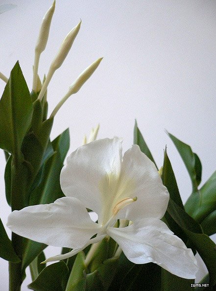 姜花 ,常綠草木,花期 5-11月,株高 1 至 2 公尺,地下莖塊狀橫生而具芳香,形若薑。葉長橢圓狀披針形,長 40~50 公分,寬 7~12 公分,上表面光滑,下表面具長毛,沒有葉柄、葉脈平行。 花序頂生,密穗狀,有大型的苞片保護,每1花序通常會綻開10~15朵花,花色計有白、黃、紅與橙色等色。乍看之下,每1朵的薑花彷若有4片花瓣,相互包捲成短柱狀,實則只有2瓣,因為其中有一較為寬大、貌似蝴蝶的雙翼花瓣,乃是「瓣狀雄蕊」特別演化所形成的;而真正具有繁衍能力、可散播花粉的雄蕊,則是與花柱合生於一起。 花萼在花瓣的後方三條細細的圓筒狀,前面呈細管狀,末端呈現(xiàn)為狹瓣狀。伸出於這些真假花瓣之中的條狀花柱,柱頭上端有淡黃色的花藥和花粉,神似蝴蝶的觸鬚,使得整朵的薑花更加酷似蝴蝶飛舞的模樣;而叢生於花序之上的數(shù)朵薑花,則宛如數(shù)隻蝴蝶共飛群聚於一起,愈發(fā)的美豔,正因其外觀若似蝴蝶之狀,故又通稱為蝴蝶薑。 果為3瓣裂的蒴果,種子紅棕色,其上有紅色假種皮,果實橢圓。 喜溫暖濕潤,不耐寒;喜半蔭及肥沃、濕潤的微酸性壤土。 臺灣的薑花是在日據(jù)時代初期自印度、馬來西亞等熱帶地區(qū)引進,現(xiàn)已極適合於本島各地生長,另在中國大陸氣候溫暖多雨的華南一帶亦不乏薑花之影蹤,不少長於野外地區(qū)的薑花則被泛稱為野薑花。 應(yīng)用: 姜黃花形美麗,淡紅色,是盆栽和切花的好材料,也可配植于小庭院內(nèi),十分幽雅耐看。 姜花清芬宜人,早已成為提取芳香油的工業(yè)原料,用以制備高級化妝品。其價格是黃金的數(shù)倍。此外它又是載入中華藥典的重要中草藥。《四川中藥志》稱之為路邊姜、土姜活。《分類草藥性》稱之為山姜活。姜花的根莖入藥。冬季采挖、曬干、去凈泥土,莖葉備用。據(jù)測定根莖含揮發(fā)油0.1%~0.124%,油中含16%醛類、桉樹腦(Eucalyptole)、倍半萜類。《四川中藥志》稱“味辛,性溫,無毒”。功用是“除風(fēng)散寒,解表發(fā)汗。治頭痛、身痛、風(fēng)濕筋骨痛及跌打損傷”。用法是:內(nèi)服煎湯,3~5錢。
