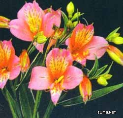 別名:秘魯百合 科屬: 石蒜科六出花屬 形態特征: 六出花根肥厚、肉質,呈塊狀莖,簇生,平臥。莖直立,不分枝。葉多數,互生,披針形,呈螺旋狀排列。傘形花序,花小而多,喇叭形,花橙黃色,內輪具紅褐色條紋斑點。 產地: 六出花原產南美的智利、秘魯、巴西、阿根廷和中美的墨西哥。 生物學特性: 喜溫暖濕潤和陽光充足環境。夏季需涼爽,怕炎熱,耐半陰,不耐寒。 六出花的生長適溫為15~25℃,最佳花芽分化溫度為20~22℃,如果長期處于20℃溫度下,將不斷形成花芽,可周年開花。如氣溫超過25℃以上,則營養生長旺盛,而不行花芽分化。耐寒品種,冬季可耐-10℃低溫,在9℃或更低溫度下也能開花。 六出花在生長期需充足水分,但高溫高濕不利于莖葉生長,易發生燒葉和彎頭現象;ê蟮厣喜靠菸M入休眠狀態,應停止澆水,保持干燥。待塊莖重新萌芽后,恢復供水,但盆內濕度不宜過高。 六出花屬長日照植物。生長期日照在60%~70%最佳,忌烈日直曬,可適當遮蔭。如秋季因日照時間短,影響開花時,采用加光措施,每天日照時間在13~14小時,可提高開花率。 土壤以疏松、肥沃和排水良好的砂質壤土,pH在6.5左右為好。盆栽土用腐葉土或泥炭土、培養土和粗沙的混合土。 用途: 六出花花色豐富,花形奇異,盛開時更顯典雅富麗,是新穎的切花材料。近年來,已開始應用于盆栽觀賞。 喜溫暖濕潤和陽光充足環境。夏季需涼爽,怕炎熱,耐半陰,不耐寒。 常見品種: 金黃六出花(Aurea),花金黃色; 純黃六出花(Lutea),花黃色;橙色多佛爾(Dover Orange),花深橙色。