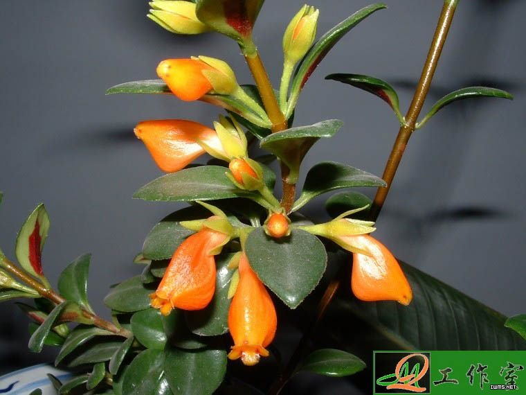 學 名: Nematanthus Cheerio 別 名: 金魚花、河豚花、親嘴花 科 屬: 苦苣苔科袋鼠花屬 類 別: 為Anigozanthos科多年生草本植物,常見的大概有11個品種。 形態特征 : 多年生常綠草本植物。葉革質,濃綠有光澤,葉片排列整齊緊湊;ㄉ冱S,花形奇特,中部膨大,兩端小,前有一個小的開口。 另外,還有一種袋鼠花,又名袋鼠腳爪,為石蒜科袋鼠花屬多年生草本植物,原產澳大利亞。葉叢生,線狀披針形,株高90厘米至150厘米。花序碩長,有花達15朵至20朵之多。花是金黃色、絨毛狀,仿佛一只只袋鼠的腳爪。 它的生長適溫為18℃至28℃,越冬溫度不得低于5℃。 原于中南美洲,目前市場上見到的多為園藝雜交種。 生長適溫為16℃至28℃,在30℃以上時,須加強遮陰通風,否則會出現落葉現象,越冬至少保持10℃以上。耐陰,適合在有散射光處,忌強光直射。 盆土表面干時澆透水,可經常向葉面及植株周圍噴水,增強空氣濕度,冬季減少澆水。 花后應將所有弱枝、頂枝以及過長的下垂枝修剪,入冬時對枯萎花莖從基部剪除,并保持干燥,有利于新花枝在翌春萌發生長。 在很多環境和土壤里都能生存,適應性較強。花期長,春天到夏天都能開花。 袋鼠花一般通過種子和分株來繁殖,但是有些品種只能靠組織培養來繁殖,用于商業上栽培的苗都是通過組織培養來繁殖的。 袋鼠花的形狀和顏色奇特已成為澳洲一種很有價值的栽培花卉,既適合私家花園種植,又是一種非常好的切花。 它們出口到全球很多地方,尤其是美國,以色列,日本等國家。 市農科院生物所2002從澳大利亞引進了4個袋鼠花品種,經過不到2年的研究和摸索目前已獲得成功,通過組織培養繁殖的植物經過1年的栽培開出了花朵,該品種的引種成功豐富我市切花的品種同時也為廣大花卉愛好者提供了一個嶄新的品種。目前該品種在中國種植還很少,屬于一種高檔切花品種。市場推廣潛力極大。