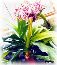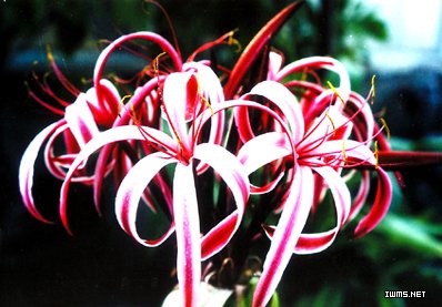 學 名: Crinum amabile 科 屬: 石蒜科文殊蘭屬 為多年生常綠草本植物, 植株高60~100厘米。 花葶自鱗莖中抽出,頂生傘形花序,每花序有小花20余朵;花被筒暗紫色,花瓣5枚,長條形,紅色,邊緣為白色或淺粉色的寬條紋,具芳香。 葉呈蓮座狀生長,寬帶狀長披針形,長100-150厘米,寬10-14厘米,紙質,綠色,全緣。傘形花序,腋生,花葶長70-100厘米,花梗扁圓形,淡紫紅色;苞片2枚,紫紅色;每葶著花20-30朵,花蕾長20厘米,深紫紅色;花瓣5枚,長條形,長14厘米,白色至淡紫紅色;芳香。 花期:3-9月。花而不實。 產地分布 : 其性喜高溫、高濕、陽光充足的氣候環境,喜肥沃的酸性土壤,較耐蔭蔽和干旱,耐瘠薄,生長適溫為18-30℃。 忌諱烈日曝曬.宜于疏松肥沃的沙壤土生長。