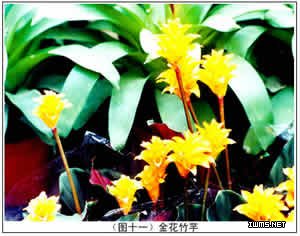 科屬: 肖竹芋屬植物,是竹芋中為數不多的既能觀花,又可賞葉的品種。 產地: 原產于南美洲的巴西 形態特征: 植株叢生,高15厘米至30厘米。 葉片長橢圓形,長14厘米至16厘米,寬7 厘米左右,全緣,稍有波浪狀起伏,葉面橄欖綠色或暗綠色,葉背淡紅或紅褐色;ㄐ蛴扇~叢中抽出,通常高出葉面,苞片橘黃色,黃色小花盛開于內. 花期冬、春季節。 生長習性: 喜高溫高濕的半陰環境,不耐寒,忌烈日暴曬,否則會因光線過強使葉片卷縮、變黃,基至葉面產生焦斑,嚴重地影響生長和觀賞。但也不能過于陰暗,宜擺放在光線明亮,但無直射陽光處養護。 5月至9月的生長期保持盆土濕潤而不積水,過于干旱和水量過大都不利于植株的生長。本種對空氣濕度要求較高,應經常向植株及周圍地面噴水,特別是夏季高溫干燥時更是如此,以使葉片清新滋潤。 為了美觀,還要定期用干凈的軟布擦洗葉片,擦洗用水最好是涼開水,并加入幾滴食用醋。生長期每半月施一次腐熟的稀薄液肥,肥料中可適當增加磷鉀的含量,以使形成更多花芽。冬季盆土適度干燥,并保持15℃以上的溫度,低于13℃就會受凍害。每1年至2年換盆一次,盆土要求含腐殖質豐富、疏松透氣、排水良好的微酸性土壤。 可用草炭土或腐葉土加少量的粗沙混勻后使用,絕不能用粘重的土壤或堿性土栽培。 金花竹芋的繁殖可結合換盆進行分株,一般在5月份天氣轉暖后進行,如果分株時溫度太低,受傷的根系很難恢復長勢,并且容易腐爛。 新分割的植株不宜過小,并使每一分割塊上帶有較多的葉片和健壯的根。新株栽種時不宜過深,否則影響新芽的生長。