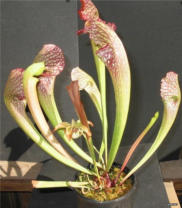 別名:荷包豬籠 產地: 原產于西歐和中北美 形態特征: 瓶子草的葉子非常奇特而有趣,有的呈管狀,有的呈喇叭狀,還有的呈壺狀,看上去好似各種形狀的瓶子,因此人們把它稱為瓶子草。 捕蟲方法: 瓶子草是一類著名的食蟲植物,瓶子草的這些瓶狀葉便是捕捉昆蟲的“誘捕器”。 瓶子的內壁非常光滑,并生有蜜腺,能分泌出香甜的蜜汁,以引誘昆蟲上鉤,瓶壁上還生有一排排尖刺般的倒毛,可以幫助捕捉昆蟲,頂端有一片唇瓣。瓶子的底部盛有液體,這是瓶子草設置捕捉昆蟲的“水牢”。 當昆蟲受到香甜味引誘前來吃蜜時,便爬到了滑溜的瓶口邊緣,它想鉆進瓶里以吃到更多的甜蜜,這時就會滑落到瓶底,掉進液體之中。 如果掉進瓶底的昆蟲企圖爬出來,內壁四周的倒毛就好似衛士手中的長矛擋住了它的去路,使其無法逃生;如果昆蟲試圖飛出去,它的翅膀就去碰到倒毛或內壁,而又重新掉進液體之中。 就這樣,昆蟲被活活淹死在“水牢”中;然后內壁分泌出消化酶,進行消化分解,再由薄壁細胞將分解出的氨基酸吸收。 瓶子草這類動物,目前世界上僅發現10種,它們均產于北美。由于其葉子都是直立地從地而上長出來的,且形狀很特殊,像個細長形的瓶子,瓶子口有—個蓋子,故取名為“瓶子草”。 瓶子草的瓶狀葉,其實就是它捕捉蟲于的器官。據專家研究發現,這種器官的內壁十分光滑,并有腺體分泌甜汁,以引誘喜甜昆蟲慕味而來。此外,內壁上還長有許多倒毛,致使昆蟲進得來卻出不去。而且瓶子的底部存有液體,昆蟲淹死在里面后被內壁分泌的消化酶化解吸收。 不過,有些昆蟲卻不怕瓶子草,因為酶消化不了它,其中奧秘有待進—步研究。 各種瓶子草的形態并不完全—樣,有的相當奇特。如美國加州相俄勒岡州山坡及沼澤地帶生長的—種瓶子草,其外形極像眼鏡蛇,故被稱之為“眼鏡蛇瓶子草”。 它的長瓶狀葉子,上部很像一彎曲的蛇頭,在瓶口處有個向下延伸的部分,又極似蛇嘴里伸出的舌頭。在舌頭周圍有腺體分泌蜜汁引蟲入瓶。