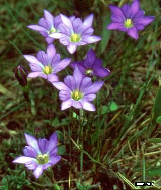 學(xué)名: alisan gentiana 科別: 龍膽科(Gentianaceae) 形態(tài)特征: 高約5-10cm,葉子呈卵型,先端銳尖.具葉鞘. 花期為5月至8月,花冠紫色,闊鍾型,有五裂,長(zhǎng)3-4mm,雌雄同株.雄蕊五枚.果實(shí)於7-9月成熟,為蒴果. 是夏日高山草原上的主角,每當(dāng)太陽(yáng)升起,它就恣情的綻放著,就如地上的繁星般.當(dāng)游客漫步於登山小徑時(shí),總會(huì)對(duì)路旁阿里山龍膽的大方純凈感到驚艷,似乎來(lái)到了天上的花園. 生長(zhǎng)習(xí)性: 阿里山龍膽布於臺(tái)灣高海拔處,喜好於巖地,裸露地生長(zhǎng),因此登山小徑旁時(shí)?梢(jiàn)它的芳蹤. 花卉人生: 阿里山龍膽是夏日高山草原上的主角,每當(dāng)太陽(yáng)升起,它就恣情的綻放著,就如地上的繁星般.當(dāng)游客漫步於登山小徑時(shí),總會(huì)對(duì)路旁阿里山龍膽的大方純凈感到驚艷,似乎來(lái)到了天上的花園. 在未開(kāi)花時(shí),它的植株并不是相當(dāng)?shù)暮梅直?因?yàn)樗悴仂镀渌?a href="http://plant.m.kstxie.cn" target="_blank" title="園林植物">植物中,只有在綻放時(shí),才提醒別人記起它的存在.