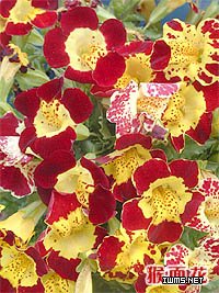 學 名: Mimulus luteus 別 名 :錦花溝酸漿、 溝酸漿 科 屬 : 玄參科、酸漿屬 產地: 原產南美智利 生態特征: 多年生宿根草本,高30—40厘米。莖粗壯,中空,伏地處節上生根。葉交互對生,寬卵圓形,長寬近相等,上部略狹。稀疏總狀花序,花對生在葉腋內,漏斗狀,黃色,通常有紫紅色斑塊或斑點。種子細小。 栽培變種的花冠底色為不同深淺的黃色,上具各種大小不同形狀的紅、紫、褐斑點。 生長習性: 喜冷涼氣候,較能耐寒,但不能受凍害,冬季能耐2℃低溫。喜潮濕,喜光照充足。在肥沃土壤上生長好。4—5月開花。 用途: 溝酸漿株形低,花大色艷有斑紋,很美麗。耐濕性強。適作花壇及盆花。 智利溝酸漿M.cupreus:植株叢生,較圓整。花初開時黃色,后轉為鮮銅黃色。變種有鮮紅、深紫紅、火紅等色,并具褐斑。 多色溝酸漿M.variegatus:植株較矮,花較大。通常喉部白色,下唇中部裂片有兩條黃色條紋,上有褐點,裂片紅紫色,背部青蓮色。園藝變種有橙紅、火紅等色,并有各種形狀斑點。 紅花溝酸漿M.cardinalis:株高30—90厘米。葉卵形,有尖齒,基部抱莖。花紅色或紅,黃兩色,花形大,上唇外翻。 麝香溝酸漿M.rnoschatus: 多年生草本,具匍匐莖,有香氣。