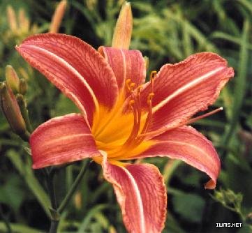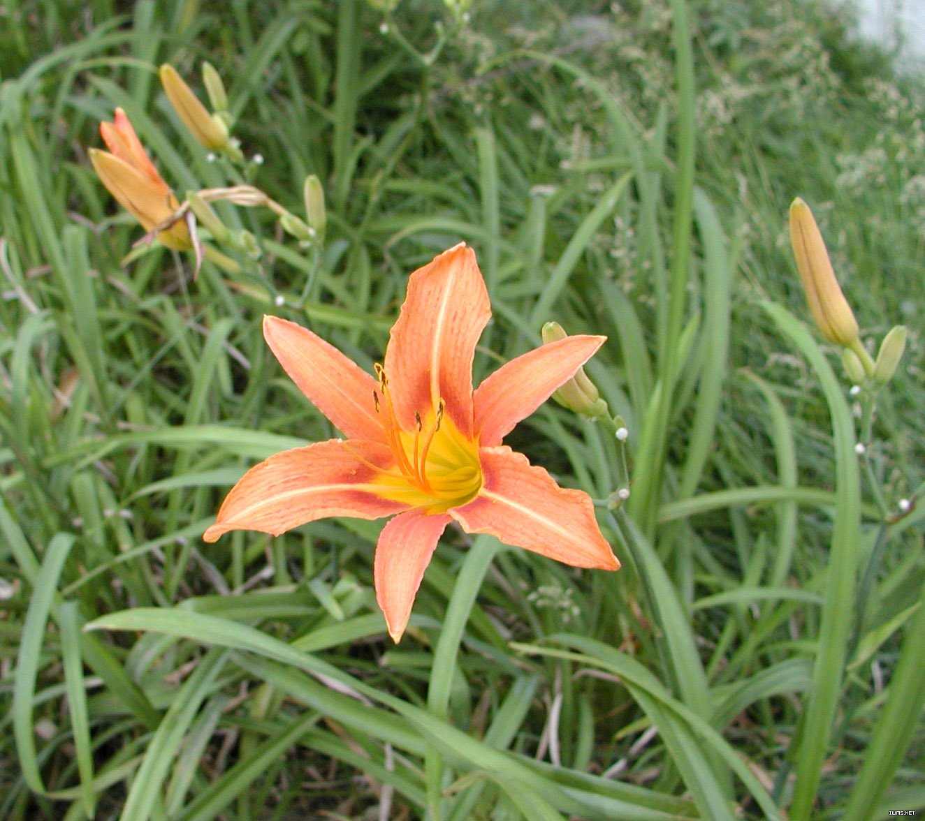 學名:Hemerocallis fulva 別名:川草花,忘憂草 科屬:百合科 生態特征: 多年生宿根草本,有地下球莖。 全株光滑無毛。葉自根莖叢生,狹長成線形,葉脈平行。花莖由葉叢抽出,高1米上分枝,呈圓錐花序,數朵出于頂端,花大黃色,花冠呈漏半狀,紛披六出,5一7月開放,單朵花只開一天。 朔果具少數種子。 產地: 原產我國,南北廣為栽培, 生長習性: 喜溫暖潮濕,對環境要求不嚴格,耐半蔭。 繁殖: 用分株法繁殖。于10月-11月將3年-4年株掘起,分起3株-6株,每株須帶有完整的芽頭,然后按行距1米,株距0.5米,坑深0.3米,先將基肥施人坑中,略蓋細土,然后栽上,栽后覆土4厘米-5厘米,壓實,然后再澆透水。 分栽也可3月份進行。 管理: 培育期間,春夏松土除草1次-2次;3月-6月內,每月施3倍-5倍水的腐熟人糞尿液,如花前施1次磷肥,可提高花的質量,萱草喜濕潤,要適時澆水。 冬季葉子枯萎,可將地上部割去,覆土一層,以便越冬,栽培土要求濕潤,肥沃,排水良好的砂壤土。 品種: 萱草的品種極多,還有小花型和重瓣型,雜交品種花色有淡黃、橙紅、淡雪青、玫紅等色。 珍貴的品種一莖可開四、五十朵花,真是千姿百態,絢麗多彩。 用途: 萱草不僅是名花佳卉,而且還是美味良蔬,其花曬干供食用,俗稱“黃花菜”。 萱草有鎮靜安眠作用,且少有副作用,對各種原因引起的失眠癥,尤其是肝功能障礙伴有失眠者,是一種比較理想的藥物。萱草花有藥食同功的雙重功能,不但營養價值極高,且有極好的健腦效果,在日本稱為健腦菜,並列為「植物性食品中最有代表性的健腦食品之一」。 另外,據吳李久華在《延壽考》中云:「嫩苗為蔬,食之動風,令人昏然如醉,因名忘憂」。《群芳譜》記載:“春食苗,夏食花,其雅牙花的跗皆可食。但性冷下氣,不可多食。《中藥大辭典》載其含有生物鹼、黃酮類。據測定每100克乾製品中含蛋白質9.14克、脂肪0.4-0.25克、糖分50-60.2克、鈣300-463毫克,並含有維生素A、B、C及多種微量元素。