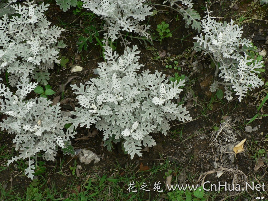 學名: Senecio cineraria 英名: dusty miller 科名: 菊科 產(chǎn)地: 地中海沿岸 生態(tài)特征: 植株多分枝,高度一般在50至80厘米,葉一至二回羽裂,正反面均被銀白色柔毛。 頭狀花序單生枝頂,花小,黃色,花期6至9月,種子7月開始陸續(xù)成熟。 生長習性: 銀葉菊在長江流域能露地越冬,不耐酷暑,高溫高濕時易死亡。 喜涼爽濕潤、陽光充足的氣候和疏松肥沃的沙質(zhì)土壤或富含有機質(zhì)的黏質(zhì)土壤。 一般在8月底9月初播于露地苗床,約半個月左右出芽整齊,苗期生長緩慢。待長有4片真葉時上5寸盆或移植大田,翌年開春后再定植上盆。生長期間可通過摘心控制其高度和增大植株蓬徑。 銀葉菊為喜肥型植物,上盆一、二個星期后,應施稀薄糞肥或用0.1%的尿素和磷酸二氫鉀噴灑葉面,以后每星期需施一次肥。栽培中發(fā)現(xiàn)銀葉菊無病蟲害發(fā)生。 銀葉菊也可用扦插繁殖。剪取10厘米左右的嫩梢,去除基部的兩片葉子,在250倍的矢達生根營養(yǎng)液中浸泡30分鐘左右,插入珍珠巖與蛭石混合的扦插池中,進行全光照噴霧,約20天左右形成良好根系。 需注意的是,在高溫高濕時扦插不易成活。通過比較發(fā)現(xiàn),扦插苗長勢不如籽播苗,蓬徑不大,植株較矮。 用途: 花壇及大型容器栽培、風景園林和花園地栽.