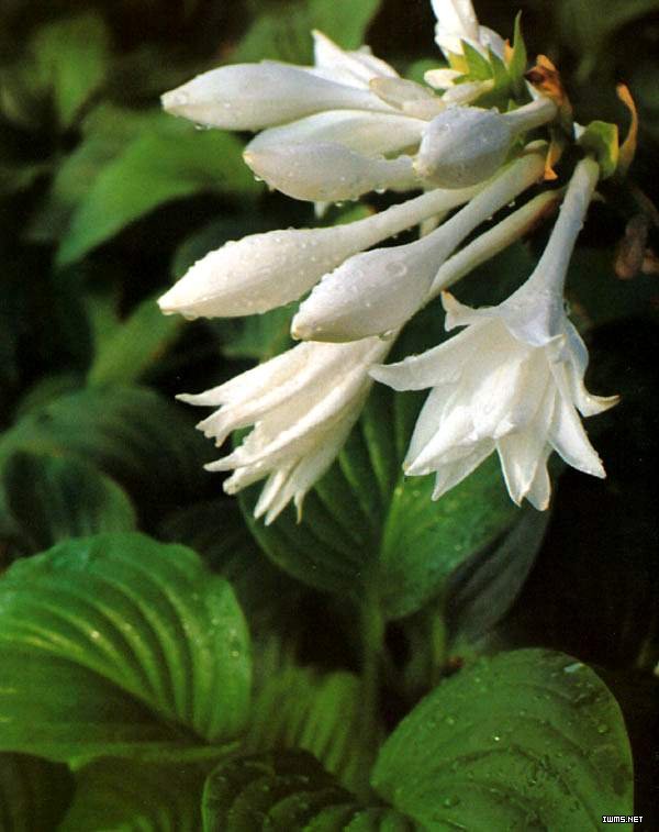 英名: Fragrant Plantaimlily 別名: 玉春棒、白鶴仙、白萼花 科名 :百合科 形態特征 : 宿根草本, 株高30cm-50cm。 葉基生成叢,卵形至心狀卵形,基部心形,葉脈呈弧狀。總狀花序頂生,高于葉叢,花為白色,管狀漏斗形,濃香。 花期6月-8月。 同屬還有開淡紫、堇紫色花的紫萼、狹葉玉簪、波葉玉簪等。 生長習性: 性強健,耐寒,喜陰,忌陽光直射,不擇土壤,但以排水良好、肥沃濕潤處生長繁茂。 栽培簡史與花文化 : 原產中國,1789年傳入歐洲,以后以傳至日本。關于玉簪花的名稱,傳說是:西王母宴群仙,仙女們飲了玉液瓊漿后飄然入醉,頭發散亂,玉簪落入塵世而化為玉簪花。另說漢武帝為寵妃取玉簪搔頭,宮女們也相互仿效,因而得玉簪花之名。 由此可見,中國栽培玉簪已民間傳說證實歷史之悠久,及人們愛好玉簪情義之深切。 唐代詩人羅隱十次考進士未成,但他不趨附權貴作晉身之階,以自喻在逆境中如玉簪一樣清操自守、潔白如玉。 園林用途: 園林中多植于林下作地被,或植于建筑物庇蔭處以襯托建筑,或配植于巖石邊,也可盆栽。 取其葉片可作http://www.cnefs.com'>插花作品的配葉,或將花朵摘下,頂朝外圓形排列于水盤中,置室內,其色美如玉,芳香,沁人心脾。 多用于林下地被,也可盆栽觀賞,葉可用于切花。 嫩芽可食,全草入藥,花還可提制芳香浸膏。