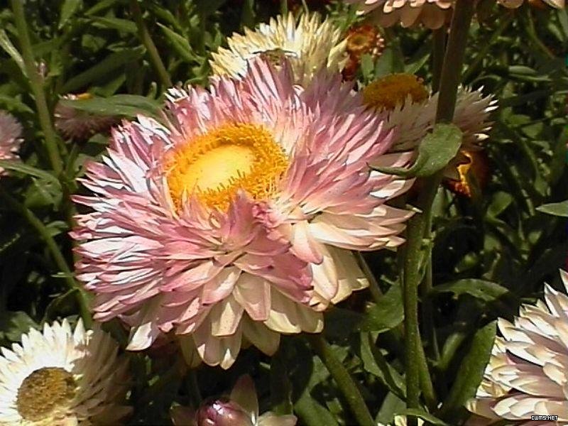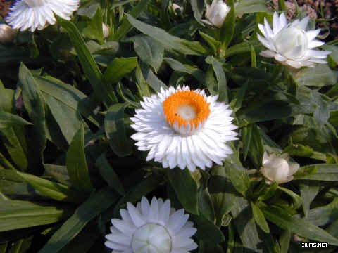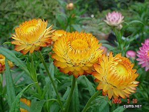 學(xué)名:Helichrysum bracteatum 科 屬:菊科蠟菊屬 別 名:蠟菊、貝細工 簡介: 麥桿菊為一年生宿根草本花卉,因其花干后不凋落,如臘制成,是制作干花的良好材料,是自然界特有的天然“工藝品”。 同屬種類有砂生蠟菊、傘花蠟菊等。多年生草本作一年生栽培,耐寒性弱,降霜會枯死。植地宜日照良好,保水,排水,保肥力良好之土地。花徑5~6CM,莖硬,色彩豐富,有紅、桃、黃、白及中間色等。 產(chǎn)地: 原產(chǎn)于澳大利亞,現(xiàn)世界各國多有栽培。 形態(tài)特征: 株高50——90厘米,莖多分枝,全株被微毛。葉互生,條狀披針形,全緣,無葉柄。頭狀花序單生枝端。總苞片多層、膜質(zhì)、覆瓦狀排列,外層苞片短,內(nèi)部各層苞片伸長酷似舌狀花,有白、黃、橙、粉、紅及暗色等,一般被人誤認為花瓣。黃色小型的管狀花聚生在花盤中央。瘦果灰褐色,光滑。 花期7——9月。 生長習(xí)性: 麥稈菊性喜溫暖和陽光充足的環(huán)境。不耐寒,忌酷熱,在濕潤而又排水良好的肥沃和疏松的土壤上生長良好。 發(fā)芽適溫:15-20℃ 生長適溫:12-25℃ 土壤:對土壤的適應(yīng)性較強,一般土壤均可種植,但要求排水良好。 水分:水份不宜過多,否則植株高大,開花較晚,忌水濕。 日照:喜陽光,陽光不足影響開花。 肥料:生長期每半月施肥一次,花期增施兩次磷鉀肥。 溫度:喜溫,也耐寒冷。播種適溫為20-22度,生長適溫為20-30度。 應(yīng)用: 可布置花壇花境,也可盆栽觀賞,另外可用其作干燥花、切花和http://www.cnefs.com'>插花。 同屬植物約350種,目前常栽培的有: 1 毛葉麥稈菊,具蔓延莖,葉片倒卵圓形,頭狀花序單生銀白色,原產(chǎn)新西蘭; 2 傘花麥稈菊,基部有些灌木狀,葉片卵圓形,頭狀花序傘呈房狀,總苞苞片長圓形,先端鈍,乳白色。原產(chǎn)南非; 3 天山麥稈菊,為宿根草本,全株密被絨毛,葉片狹披針形,頭狀花序呈傘房狀,黃色或桔紅色,原產(chǎn)中國新疆. 此種麥稈菊花似金色的太陽,光彩奪目,十分動人,在嶺南的花圃普遍種植。