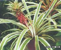 科屬:鳳梨科鳳梨屬,它是鳳梨的一個變種。 產地:原產美洲的熱帶和亞熱帶地區。 形態特征: 金邊鳳梨有20或25片葉子,由外到內,由下而上螺旋狀排列成蓮座狀。葉革質有光澤,厚實挺括,劍形向外反卷。葉片正面為深綠色,邊緣為黃綠色,部分葉片中間也嵌有不等的黃綠條紋,葉邊周圍有鈍刺。葉背為粉綠色,有與葉面相同的黃綠色隱條。 一為花苞觀賞期: 金邊鳳梨的花苞特殊,艷麗誘人。花托之上,長有直徑2.5厘米左右粗的圓柱形,頂端為圓錘形的花苞,花苞薯片約25?30片由下至上象筍殼一樣包成一個由深粉紅到粉紅色的柱體花苞,酷似一支紅色竹筍鑲嵌入金邊鳳梨之中。花苞列時約兩周左右,為了延長花苞的觀賞期,可將盆移到室內蔭處,花苞觀賞期可達三周左右。 二為花朵觀賞期: 花苞(鱗莖)裂開后,抽出挺直的花莖,花朵開足時,由16朵小花組成傘狀花序,每朵小花呈下黃、中紅、上紫三裂片的花形。春夏之際觀花,常年觀葉,正可謂花葉俱美的觀葉上品。