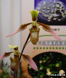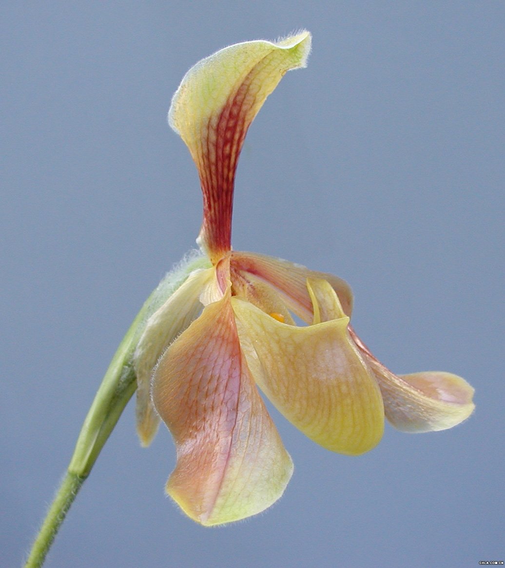 拉丁名:Paphopedilum appletonianum 形態特征: 地生植物。葉基生,二列,4––8枚;葉片狹橢圓形,長22––25厘米,寬214(一5)厘米,先端急尖并常有2—3枚小齒,上面有深淺綠色相間的網格斑(明顯或不甚明顯),背面淡綠色并在基部有紫暈,無毛,基部收狹而成葉柄狀并對折而互相套疊。 花葶直立,長17––25厘米或過之,并在果期繼續延長達60厘米,紫褐色,疏被短柔毛,頂端通常生1花;花苞片2枚,大的1枚寬卵形,圍抱子房,長2––2.7厘米,寬約1.4厘米,先端具3小齒. 背面有龍骨狀突起并被短柔毛,邊緣具緣毛;小的線形,長1.4厘米,亦被毛;花梗和子房長415(一6)厘米,被短柔毛;花直徑8–––9厘米;中萼片綠白色并有綠色脈,基部常有紫暈,合萼片亦為綠白色并具深色脈,花瓣下半部有暗褐色與灰白色相間的條紋或斑及黑色斑點,上半部淡紫紅色,唇瓣末端淡黃綠色至灰色,其余部分淡紫紅色并有綠色的囊口邊緣,退化雄蕊中央深綠色,邊緣淡綠色;中萼片寬卵形,長3.5––4厘米,寬2––2.6厘米,先端短漸尖,上部邊緣內卷,基部邊緣外卷,背面被微柔毛并在中部以上具龍骨狀突起;合萼片卵狀橢圓形,長2.5—3厘米,寬1.5—1.7厘米,先端具3小齒,背面亦稍被毛. 花瓣近匙形,長4.5–––6厘米,上部寬1.5––2厘米,先端近急尖并略有2—3個小齒,中部至基部邊緣波狀并在上側近邊緣處具10余個黑色疣點,下側邊緣亦有少數黑疣點;唇瓣倒盔狀,基部具寬闊的、長1.5—2厘米的柄;囊近狹橢圓形,長2—3厘米,寬1.5—1.8厘米,囊口極寬闊,兩側各具1個直立的耳,有時前側還有2個小耳,前方邊緣不內折,兩側內折裂片上常有黑色疣點,囊底有毛;退化雄蕊橫橢圓形或近圓形,長6—8毫米,寬7–––9毫米,先端有明顯凹缺,缺口中央具短尖,基部略呈心形,上面中央有不甚明顯的突起。 花期1—5月。 產地分布: 產海南(東方、感恩、陵水、定安)和廣西南部。 生長習性: 生于海拔30O–1200米的林下陰濕、腐殖質多的土壤上或巖石上。 越南、老撾、柬埔寨和泰國也有分布。