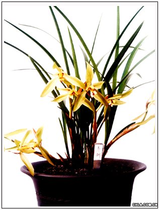 春劍常稱為正宗川蘭,雖云、貴、川均有名品,但以川蘭名品最名貴。 形態特征: 春劍是春蘭的一個變種,葉片直立性強,花莖直立,高2 0至30厘米,有花2至5朵,有時7朵,花苞片比子房連梗長;花直徑5 至6厘米,淺黃綠色,常呈半透明狀,有香味。 萼片長圓形披針狀,中萼片直立稍向前傾,側萼片左右斜向開展,花瓣較萼片為短,基部有三條紫紅色條斑,唇瓣端鈍、反卷。春劍葉姿挺拔蒼健,秀氣非凡,頗具風韻。 花色有紅、黃、白、綠、紫、黑及復色,艷麗耀目,容貌窈窕,風韻高雅,香濃味純,常為養蘭人推崇首選。 最早春劍被作為蕙蘭的變種,后來又被定為一個獨立的種。 生長習性: 春劍的生長適宜溫度為18-28℃,夏天不超過35℃,冬天不低于零下2 ℃,生殖生長溫度為 8-18℃。 春劍對空氣濕度的要求為55%-70%,冬季休眠期(空氣最干操)空氣濕度不要低于50%,生長期最好空氣濕度應保持在70%左右。 春劍對水分的要求:春劍性喜涼爽,盆土不宜過濕,開花時間和生長期適當多澆水,休眠期宜少澆水。春劍宜用深筒素燒瓦盆栽培。它的假鱗球莖集生成叢,為橢圓球形,它的根粗壯,假鱗莖和粗根都具有一定的保水性,能應付短期6天左右的干旱。 春劍對光照的要求:適合春劍生長的光照條件是半陰,夏秋季要求遮蔭65%-75%左右,冬春季可適當增加光照。 春劍與春蘭習性相近,能耐寒,在常溫下可順利越冬;冬季也需充分照射陽光,使花芽飽滿健壯。 春劍宜在春季栽培,翻栽宜在開花以后進行。如果是生草,可在春季開花前栽植,不久即可見花。 春劍花期略晚。春劍對褐斑病抵抗力很弱,夏、秋兩季應特別注意。可用50%的甲基托布津800倍液或50%的多菌靈800—1000倍液防治。該病10—11月病斑蔓延,嚴重的可使整株整盆死去,來年即或發出葉芽也很弱小。所以在初發現病株時,應及時剪去病葉,并對病盆實行隔離。 如何鑒別春蘭與春劍? 春蘭俗稱山蘭、草蘭、撲地蘭、朵朵香,是我國分布最廣的蘭花之一。 春劍主產于四川西部山區,云南、貴州也產。春蘭與春劍都是春季開花的品種,有香氣。春蘭開花1-2朵,春劍開花2-7朵而且花蕾比春蘭多,花型也比春蘭大;春蘭花色中、東部以黃綠、嫩綠為多,大西南除黃綠、嫩綠外還有金黃、紫紅色的。而春劍花色以淺黃綠、紫紅及復色居多。 春劍葉4-7片,先端漸尖,葉色濃綠,略帶光澤,直立性強,呈劍形,比春蘭葉片寬長些,葉緣有細鋸齒,比春蘭葉齒粗糙、銳利,葉背有3條脈筋,中脈顯著,斷面呈V形。葉基無指環(離層)。 春蘭葉4-6片,葉姿多半立葉、半垂葉、垂葉,葉色黃綠及綠、碧綠。葉基有指環(離層)。 春蘭的蘭頭(假鱗莖)呈球形,根帶肉質,細圓,呈灰白色,而春劍蘭頭不明顯,根比春蘭的根長而粗壯。 春蘭與春劍各有名品:如春蘭的宋梅、集圓、萬字、龍字等;而春劍有西蜀道光、銀桿素、西山春劍素、凌波仙子等名貴品種。