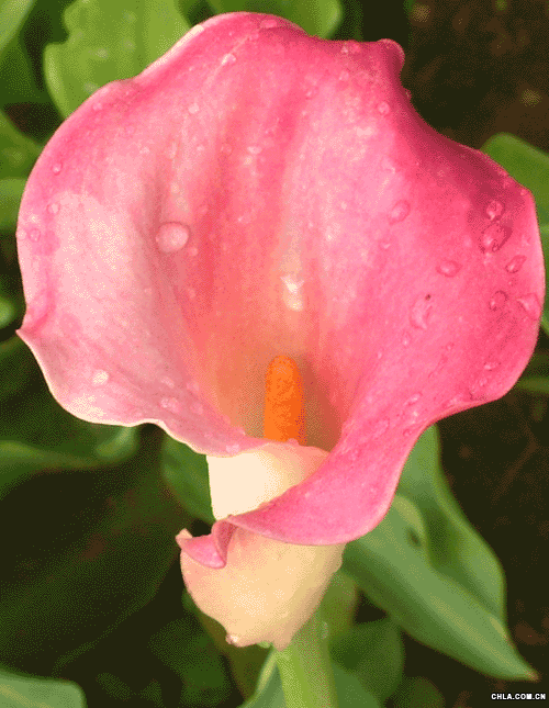 學名:Zantedeschia hybrida 科屬:天南星科 馬蹄蓮屬 品種:共有7個品種3個亞種,商業品種有數百個。 形態特征: 彩色馬蹄蓮具有肉質球莖,節處生根,根系發達粗壯。葉莖生,葉片圓形或戟形,按段尖銳有光澤,全緣,多數品種葉片有半透明斑點。 花序具有大型的佛焰苞漏斗狀,似馬蹄 先端尖反卷。佛焰苞依品種不同,顏色異、有白、粉、黃、紫、紅、橙、綠等色彩。在佛焰苞的中央有無數的小花構成肉穗花序多位黃色,淡綠色圓柱形。