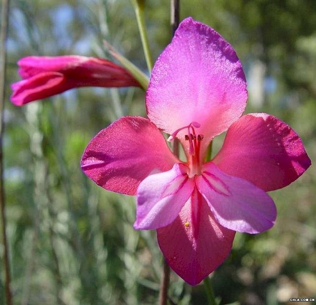 學名: Gladolus 別名:十樣錦、十三太保、洋玉簪 科屬:鳶尾科唐菖蒲屬 產地及分布: 原產于非洲熱帶和地中海地區,近年在我國境內的新疆及云南報道有野生類型。唐菖蒲是一種重要的球根花卉,作切花栽培應用廣泛。在昆明可作塑料大棚保護地栽培,在云南元江、元謀、西雙版納、紅河等無霜熱地可作冬季露地栽培。