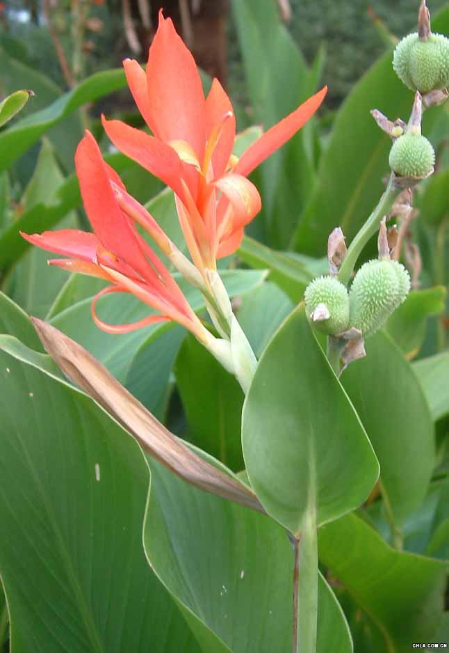 莖葉茂盛,花大色艷,花期長(zhǎng),適合大片的自然栽植。也可植于花壇、花境中,矮化品種可盆栽觀賞。 美人蕉(小花美人蕉、小芭蕉)Cannaindica,株高1~1,3m,莖葉綠而光滑。葉長(zhǎng) l0一 3Ocm,寬5~l5cm。總狀花序,花稀花小兩朵簇生,瓣化瓣紅色,唇瓣橙黃色,上有紅色斑 點(diǎn)。 蕉藕(食用美人蕉)C·edulis,棵高2一3m,莖紫色,葉長(zhǎng)圓形,長(zhǎng)30~6Ocm寬18~2Ocm,表 面綠色,背面及葉緣有紫暈。 黃花美人蕉(柔瓣美人蕉)C·flaccida,株高1·2一1·5m,莖綠色,葉長(zhǎng)圓狀披針形,長(zhǎng)25一 6Ocm,寬l0~2Ocm,花序單生而疏松,著花少,苞片極少,花大而柔軟,向下反曲,下部呈筒狀, 淡黃色,唇瓣圓形。 鳶尾花美人蕉C·iridiflora,株高2一4m。葉廣橢圓形,表面散生軟毛。花大,長(zhǎng)約l2cm,淡紅色。 紫葉美人蕉(紅葉美人蕉)C·warscewicz"株高l~1·2m,莖葉均為紫色并具白粉,瓣化瓣 紫紅色,唇瓣鮮紅色。 意大利美人蕉(蘭花美人蕉)C·orchioides株高lm余。葉綠色或青銅色,花徑最大達(dá) l5cm。鮮黃至深紅色。瓣化瓣5枚。 大花美人蕉C·generalis,株高1·5m,株被白粉,葉大闊橢圓形,長(zhǎng)約4Ocm,寬約2Ocm,花 序總狀,有長(zhǎng)梗,花大,徑lOcm。莖部不呈筒狀。瓣化瓣直立不反卷。
