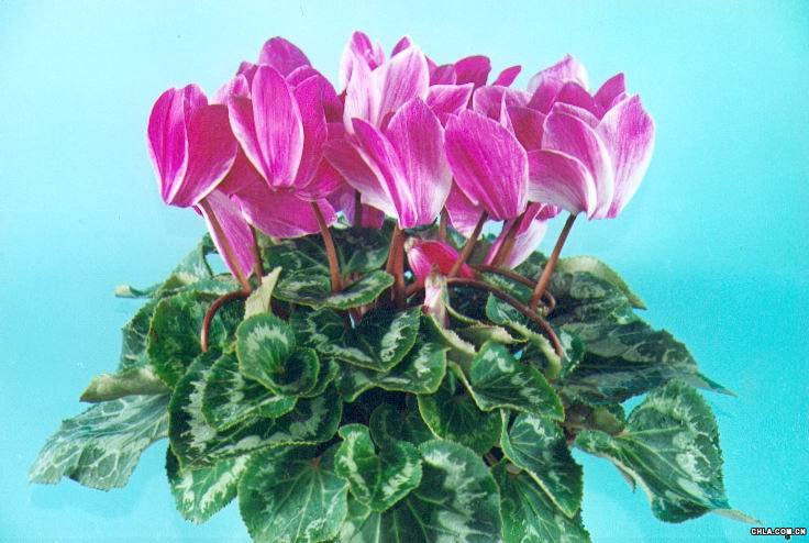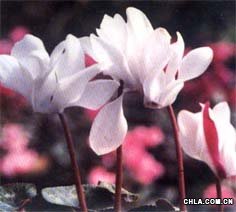 學(xué)名:Cyclamen persicum 別名:一品冠、兔耳花、蘿卜海棠 科屬:報(bào)春花科仙客來屬 英名:Florists Cyclamen 別名:兔子花、蘿卜海棠、一品冠、兔耳花 季節(jié):冬季、春季 地區(qū):地中海 形態(tài)特征: 多年生草本, 有扁圓形肉質(zhì)球莖。花形奇特。葉片由塊莖頂部生出,心形、卵形或腎形,葉緣有細(xì)鋸齒,葉面綠色,具有白色或灰色暈斑,葉背綠色或紫色,葉柄較長(zhǎng),紅褐色,肉質(zhì)。花單生于花莖頂部,花朵下垂,花瓣向上反卷,尤如兔耳;花有白、粉、玫紅、大紅、紫紅、雪青等色,基部常具深紅色斑;花瓣邊緣多樣,有全緣、缺刻、皺褶和波浪等形。 花期12月至翌年5月、蒴果球形,種子褐色。 栽培變種較多,有大花型、皺瓣型、小花型等。有的具芳香。 常見品種有粉紅的“阿斯梅爾”、“粉畫”、“粉樂”,白色紅邊的“維多利亞”,有小蒼蘭香氣的“香波”,大花的“金質(zhì)獎(jiǎng)?wù)隆,雙色的“寶藏”,迷你型的“安納利”和微型、觀葉的“延尼”、‘米茨”等。 繁 殖: 應(yīng)用價(jià)值: 仙客來花色艷麗,花形奇特誘人,葉形規(guī)正,具有斑紋,為世界著名的溫室花卉。 盛花的仙客來深受人們喜愛,用它裝點(diǎn)客廳、案頭以及商店、餐廳等,鮮艷奪目,引人人勝。 在歐美也是圣誕節(jié)饋贈(zèng)親友的禮品。