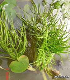 學名:Ceratopteris thalictroides (L.) Brongn. 別名:水羊齒、水防風、水胡蘿卜 科屬:水蕨科水蕨屬 生長分布: 水源干凈的小水溝、水田及水田附近以及沼澤地里都是它理想居所。 形態特征: 多年生草本。 水生或半水生生草本;根狀莖短,直立,生根于淤泥中。葉簇生,二型;葉柄綠色,肉質,中空,長度因水的深度而不同;不育葉二回羽狀分裂,通常長20-30厘米;羽片再作1-2次分裂,裂片線形。 莖不明顯或短而直立,鬆軟多汁。葉片長約10-35公分,光滑無毛,二形,二至三回羽狀分裂,葉柄與葉片約等長,網狀脈,網眼間無游離小脈。裸葉一般扁平,草綠色或黃綠色,小羽片凹入處常有不定芽。實葉狹長,葉緣向後反捲成筒形,將孢子囊群包含在其中。幼時與裸葉同色,成熟後轉為枯乾的褐色。 生長習性: 生長於海拔 500公尺以下的水稻田,沼澤地或水流緩慢的溪流邊。由於稻田大量使用殺草劑及開發迅速,本種蕨類正逐漸減少中。 主要種類---浮水蕨 浮水蕨(Ceratopteris pterioides (Hook.) Hieron) 別名:粗梗水蕨、浮葉水蕨。水蕨科水蕨屬。一種一年生浮水草本。植株高28-55cm,其營養葉為單葉,葉片呈闊狀三角形,長18-25cm,呈羽狀深裂,裂片3-7枚,闊卵狀三角形。葉柄粗壯,柄內海綿細胞含有空氣,使整個植株漂浮于水面。孢子葉的葉軸膨脹成圓柱形;葉片呈多回羽狀細裂,而末回裂片為狹線形,頂端漸尖。 產于我國長江以南各;野生的浮水蕨常成片漂浮于湖沼、池塘中。栽培植株在溫度22-30℃條件下生長良好;對水體環境適應性較強。 應選擇背風向陽的靜水面池塘種植為宜。 在園林水景中,點綴數叢浮水蕨,景觀效果好;家庭半景水族箱中,常用來造景,其觀賞效果亦佳。 能育葉通常長于不育葉,二回羽狀分裂;小羽片分裂成線形裂片;末回裂片長1.5-4厘米,寬約2毫米,邊緣反卷,薄而透明。 孢子囊沿能育葉裂片的縱脈兩側著生,并為裂片反卷的邊緣所覆蓋。 生長分布: 水源干凈的小水溝、水田及水田附近以及沼澤地里都是它理想居所。 多年生草本。 形態特征: 水生或半水生生草本;根狀莖短,直立,生根于淤泥中。葉簇生,二型;葉柄綠色,肉質,中空,長度因水的深度而不同;不育葉二回羽狀分裂,通常長20-30厘米;羽片再作1-2次分裂,裂片線形。 能育葉通常長于不育葉,二回羽狀分裂;小羽片分裂成線形裂片;末回裂片長1.5-4厘米,寬約2毫米,邊緣反卷,薄而透明。 孢子囊沿能育葉裂片的縱脈兩側著生,并為裂片反卷的邊緣所覆蓋。 用途:葉子肥厚多汁,尤其幼嫩的營養葉不亞于嫩綠的蔬菜,是可食用蕨類中的佼佼者。在中藥方面,幼苗治療腹中痞積,葉子可以治胎毒也可以外敷皮膚病.