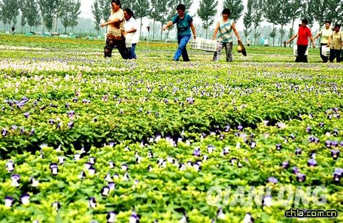 黃秀慧/攝 記者3日上午在草橋奧運草花順義基地看到,來自首都機場、豐臺、石景山園林局等機關團體團購奧運草花的企事業單位采購車絡繹不絕,不到兩個小時,近100萬盆的奧運草花已經被搶購一空。