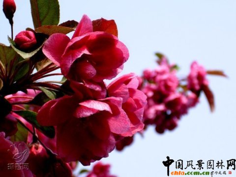 海棠花姿瀟灑,花開似錦,素有“花中神仙”、“花貴妃”、“花尊貴”之稱。南宋陸游詩云:“雖艷無俗姿,太皇真富貴。”形容海棠艷美高雅。隨著育種技術的發展,園林工作者培育出許多新的海棠品種,使得海棠的花色、葉色等得以進一步的豐富。 通過從美國引種,國內現已擁有了一批新的海棠品種,并在北方城市綠化中得以應用。這批美國海棠品種都具有很好的觀賞效果,既可觀花又可觀果,耐寒性強,適合在我國北方種植。主要品種有:‘道格’海棠、‘火焰’海棠、‘寶石’海棠、‘凱爾斯’海棠、‘粉芽’海棠、‘絢麗’海棠、‘紅玉’海棠、‘紅麗’海棠、‘王族’海棠、‘雪球’海棠、‘鉆石’海棠、‘草莓果凍’海棠等。其中‘紅玉’海棠為垂枝的品種,‘凱爾斯’為重瓣花的新品種,‘王族’海棠葉色紫紅,是觀花觀葉的優秀品種。這些海棠的花期為4月下旬,花色極為豐富,主要體現在白色、粉色、紫色、紅色等色系中,有不同色深及冷暖色調差異。 海棠花多為較暖的熱烈色調,多數紅色系海棠的花色從幽深的濃酒紅色花蕾隨之開放出盛花期明亮的雪青紫、鮮紅及冷暖粉紅色,盛花過后的顏色日漸清淡,正好被新萌發的葉色襯托,別有一番景觀。當使用海棠樹數量比較多時,配置少量的白花品種是非常必要的,白花及其綠葉會起到明亮色彩的效果,使其它的顏色明快起來。 北京西三環航天橋下的綠化帶中種植了部分新的美國海棠品種,花開時滿樹繽紛,整個綠化帶宛如一個小花園,給煩亂的公路平添了一分清幽與甜美。在北京右安門附近的一處街心花園內,也栽植了部分美國海棠品種,主要是不同品種孤植于草坪中,旁邊點綴些灌木類的植物,如小檗、錦帶等。每年的4月下旬,一樹樹的海棠花競相開放,忙碌了一天的人們漫步其中,在花的海洋中洗滌一天的疲憊。在北京植物園的海棠——荀子園內,收集了大批的海棠新品種,形成了一個海棠品種專類園。盛花時節,整個專類園宛如是花的海洋,白花、粉花、深粉色的花交相輝映,滿眼燦爛,每年都會吸引大批的游客前來觀賞。北京玉淵潭公園內的草坪中孤植或叢植了一些美國海棠品種,海棠的花期正好與櫻花相銜接,延長了公園內的觀花期,使景觀更加美麗。 美國海棠抗性強、耐寒、耐極薄,管理容易,觀賞效果好,在園林綠化中適于列植于道路兩旁,亦可孤植、叢植于草坪上或點綴于巖石旁、湖水邊。