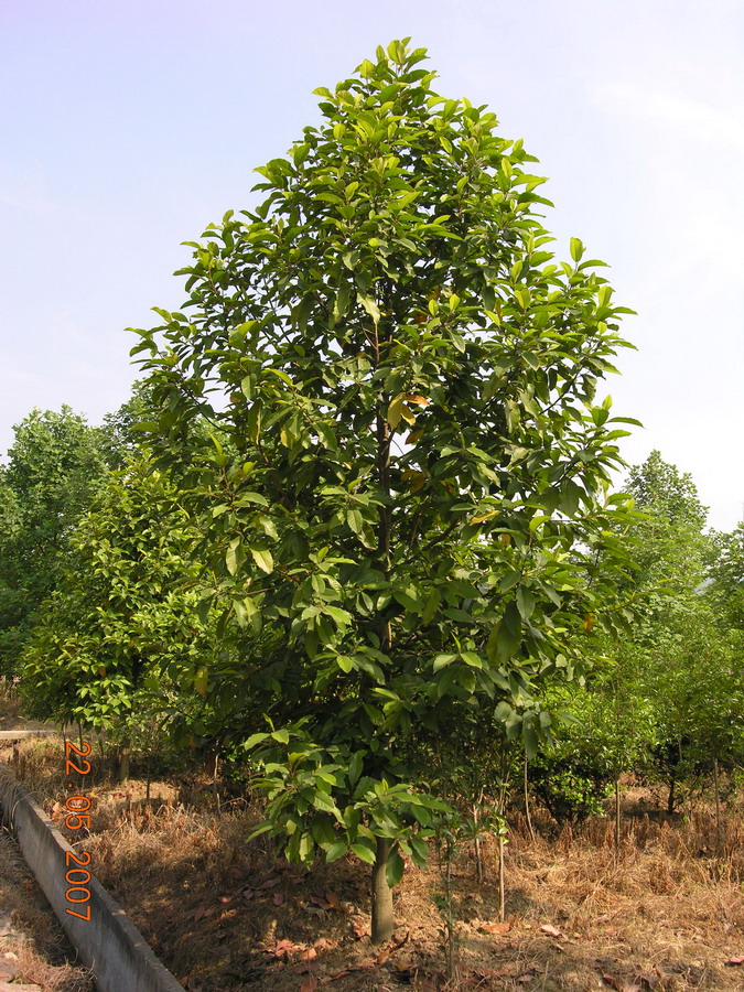 觀光木,又名香花木、香木楠、宿軸木蘭,是木蘭科觀光木屬唯一品種,被列入國家珍稀瀕危二級保護(hù)植物,是我國中部和南方特有的著名園林綠化和香料植物,是繼同科植物樂昌含笑、深山含笑、紅花木蓮之后的又一新開發(fā)品種。 觀光木,高大常綠喬木,樹干挺拔俊秀,枝密陰濃,呈闊圓錐狀,葉綠厚膜質(zhì),葉片橢圓或矩圓形,表面光澤,背面網(wǎng)脈金黃隆起,葉柄金黃色,色相豐富耀眼。3至4月開紫紅色花朵,芳香怡人,方圓百米可聞,別稱香花木即因此得名。一般6至7年左右掛果,有大小年間隔周期,因此種源較為稀少。果實(shí)表面彎拱起伏呈聚合巨型果,果皮由青色逐漸轉(zhuǎn)為紅色。單果重0.4至1.2公斤,盛產(chǎn)時滿樹碩果下垂,蔚為壯觀。它根系發(fā)達(dá),涵養(yǎng)水源效果明顯,具有鮮明的園藝特征,確實(shí)是一種難得的兼有賞花、觀果功效的速生綠化珍稀樹種。近些年市場需求量大,價格不斷上揚(yáng)。可廣泛用于景區(qū)、行道、庭院等處綠化,孤植和群植均成景觀;也可在山上大面積造林作優(yōu)質(zhì)材用。喜濕潤環(huán)境,在酸性至中性土壤中長勢良好,適合我國淮河流域及其以南地區(qū)栽植。在大余縣林業(yè)部門和大余縣科協(xié)的精心試驗(yàn)后,觀光木已在大余縣實(shí)現(xiàn)規(guī)模開發(fā)。 觀光木主要用種子繁殖。10月上中旬,少量種皮微裂時采收。純凈棕黑色三角菱形狀種子,每百斤鮮果僅能取得3.5斤純凈種子,種子每斤1600至1800粒,沙藏至翌年2月或3月播種。施足農(nóng)家肥作基肥,用開條溝方式點(diǎn)播,行株距15×8厘米左右,覆土2厘米厚,遮草保溫,出苗盛期至結(jié)束分兩次撤去覆草,發(fā)芽率85%左右。一年苗高35至85厘米,當(dāng)年冬天或第二年春天即可移植,按70×40厘米規(guī)格,畝栽2200株,培育3至4年,可達(dá)到高3米以上。(廖君福譚序忠曹人智)