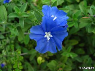 學名 : Evolvulus nuttallianus 科名: 旋花科(Convolvulaceae). 別名:星形花、雨傘花、草本仙丹花 原產地: 北美洲 分佈: 全島山野至海邊 用途: 庭園觀賞美化。 一般用途為庭園美化、花壇、盆栽、或地被。 葉 : 葉互生,長橢圓形,全緣,葉背密被白毛。 半蔓性常綠小灌木。性喜高溫,日照需良好。株高30~60公分,莖、葉背密被白毛。葉互生,長橢圓形,全緣。花腋生,合瓣花,花冠藍色,中心白星形。全年均能開花。 其他: 藍星花是旋花科多年生木本植物。顧名思義,藍色的花朵是她的特色。藍星花極易種植,日照和水分只要充足,全年均能開花。尤其夏季裡,點點淡藍的花朵,點綴著整個花圃,有如夏夜清涼的繁星,真是美妙極了。 繁殖採扦插法,選擇年輕的枝條,斜插入土,保持濕潤,極易發根成苗。繁殖期以春秋兩季為佳。 花期 : 全年;有趣的是,藍星花的花朵只在早上盛開,下午就謝了. 水份 : 水分的供給很重要,尤其是夏季時,最好每天早晚確認是否需澆水,若缺水過久,植株復原不易,冬天則可剪少澆水次數。 施肥 : 每月固定施用速效肥. 繁殖 : 扦插法來繁殖,春、秋兩季為適期;可選取枝條約每3~4節一段,去除最下面一節的葉片,再斜插于排水良好的介質中,約1周即可發根。 觀賞用途 : 庭園美化、花壇、盆栽或地被。
