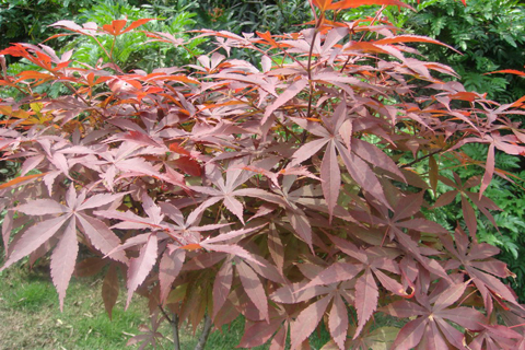 紅楓又名紫紅雞爪槭,屬槭樹科槭樹屬落葉小喬木,是世界上重要的觀賞植物。紅楓以優美的樹形、動人的秋葉、奇特的果形給人以美的感受。 紅楓在我國栽培歷史悠久,其嫩葉、嫩枝、花序皆呈艷紅色,是春天觀賞紅葉的稀有品種;入秋以后,葉色更鮮艷美麗,楓葉猩紅,盡染山麓,極富觀賞價值。比如,南京的棲霞山紅楓遍野,晚秋景致宜人,葉色如錦緞,就是秋游觀紅葉的勝地之一。 紅楓的形態很特別,小枝、嫩葉為紫紅色,葉近圓形,薄紙質,掌狀深裂,常有7裂片,裂片卵形或披針形,邊緣有緊貼的銳鋸齒,傘房花序,花紫色,雄花和兩性花同株,萼片花瓣皆5,雄蕊8個,花柱2裂,翅果棕黃色,兩翅張開成鈍角。 紅楓是青楓的變種,喜光,較耐陰,喜溫暖濕潤氣候,不甚耐寒,華北栽培須選小氣候好的環境。肥沃、深厚、排水良好的土壤最適宜于紅楓生長。 紅楓一般采用嫁接繁殖。砧木用青楓、三角楓、五角楓的實生苗,以青楓親和力最好,成活率高。 嫁接可用切接及盾形芽接。砧木用2年~3年生苗。切接在早春3月~4月砧木樹液開始流動而接穗尚未發芽時進行。芽接以9月上中旬為宜,此時接穗上的芽已充分成熟飽滿,嫁接成活率高。