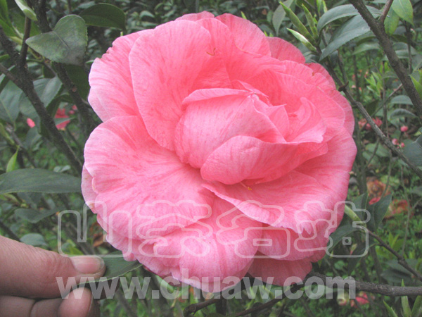 淡紅色帶血紅條紋斑點,甚至斑塊,巨型花,花徑可達14厘米以上,重瓣,立性,花期1月至2月盛開。在澳大利亞育成。