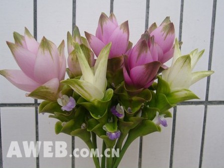 (一)品種選擇 在國外姜荷花品種已相當豐富,有‘清邁粉’、‘清邁紅’、‘清邁白’、‘清邁雪’、‘藍月亮’等不同顏色的品種,及‘寶石’、‘彩虹’等一些植株較高大的品種,也有一些植株較矮的盆栽品種。而在國內作切花生產的則多選用苞片為粉紅色的‘清邁粉’。 (二)選用優質種球 姜荷花的地下部分由球莖和貯藏根所組成,球莖的大小與貯藏根的多少,會直接影響切花和種球的產量,特別是前期切花的產量。種植時應選擇球莖直徑1.5cm以上,且帶3個以上貯藏根的種球為宜。 (三)適時種植 筆者近幾年在廣東省東莞市進行姜荷花生產,對姜荷花在東莞的生產情況比較了解。在東莞適宜的種植期為2月底至4月初,最好在4月份雨季來臨之前種植完畢,土壤以沙質壤土為宜,種植前先整地做畦,畦寬70-80cm,溝寬20-30cm,每畦種2行,株距7.5-12.5cm,每畝需種球10000-17000球左右。種后在畦面蓋稻草以保濕、防雜草及防止雨水沖涮,畦溝噴丁草胺防雜草過早萌發。 (四)肥水管理 種植前每畝施復合肥(N、P、K含量均為15%)25kg作底肥,萌芽后每10-15天追肥一次,每次每畝施復合肥25kg,施肥量、施肥次數視葉色、花色適量增減。姜荷花的整個生長期正值雨季,真正需要灌水的時間不多,主要是注意排水,防止水浸,土壤過干時應適當灌水以保持濕潤。 (五)適當遮蔭 姜荷花在露天栽培下,切花長度約為40-60cm,遮蔭處理則可達70cm以上且能有效減少花苞末端綠色斑塊,可在生長前期用遮光率為30%的遮蔭網適度遮蔭以增加切花長度,但在植株生長茂密時要及時將遮蔭網拆除,否則容易造成植株徒長,影響花的品質。 (六)病蟲害防治 蟲害主要有夜蛾、螻蛄等,病害有赤斑病、炭疽病等。每15天左右施藥一次,用甲胺磷、殺蟲雙及多菌靈、托布津、代森鋅等農藥輪流噴施。同時要避免連作及不要與姜科作物輪作。 (七)切花的采收與運輸 當有3-5片苞片展開時為姜荷花切花采收適期,正確的采收和運輸方法是姜荷花能否種植成功的重要一環。姜荷花切花品質的優劣與植株含水量的多寡密切相關。清晨采收,切花具較高的水分含量,以5-7時采收最佳,瓶插壽命最長,采收后應將花立即插到水里吸水,吸足水后,如作1小時左右的短途運輸,運送過程鮮花可不帶水,但如果是時間較久的遠距離運送,則運送過程中鮮花需要帶水,才能保證鮮花的質量。按照以上的方法,姜荷花瓶插15天是不成問題的。另外,為增加母株保留的葉片數量,以提高切花及種球的產量,切花采收時只需帶1片葉即可。
