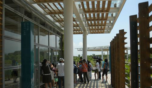 在項目的建筑配套設施安裝中也考慮環保因素,因此能源利用率特別高,同時運營費用非常低。濕地公園是香港第一個在空調設施中采用地溫冷卻系統的重要項目。這個系統利用了相對穩定并且幾乎保持恒定的存在于地表以下幾米的地溫,以及在工地范圍內相當廣大的地面散熱能力。