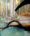 展覽館世界級的展品向游人介紹濕地的重要性、全球分布情況和其驚人的多樣性,進一步向游人展示主題。展品中包括一個按原樣復制的熱帶雨林泥灘沼澤生態系統,其中棲息著五條鱷魚和其他動物。另一個展廊通過人類文化和濕地之間的歷史,展示人與濕地之間的親密關系。游客有機會成為濕地電視臺的記者,調查濕地正在遭受的威脅和學習該如何去做。