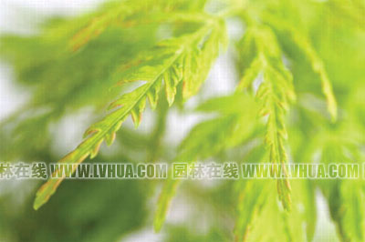 形態:落葉小喬木或灌木。紅楓的株態、葉形同雞爪槭。高2~4米。樹冠近圓形或傘形,單葉對生,葉掌呈掌狀5~7裂,深裂幾達葉片基部,裂片長橢圓形,直徑5~10cm,先端尾尖狀,葉緣有重鋸齒,葉終年呈紅色或紫紅色。紅楓和雞爪槭的葉子差不多,尤其是在夏季的時候,比較難分辨。枝條光滑細長,枝色紫紅色,花柄也為紅色;斏鷤惴炕ㄐ,紫色,花期5月。翅果無毛,翅長2~3cm,兩翅間成鈍角,翅堅果9~10月份成熟。 分布:我國長江流域各地都有廣泛的園林栽植。 習性:紅楓稍喜光,忌烈日和西曬,若在高溫、干燥、烈日照射下,或在空氣污染等環境中都會造成葉尖焦枯或卷葉,產生“日灼”現象。喜溫暖濕潤氣候和深厚肥沃疏松排水良好的土壤,不耐水澇,稍耐旱,較耐寒,在我國大部分地區都能露地越冬。 觀賞特性及園林用途:紅楓葉和枝常年呈紫紅色,艷麗奪目,觀賞價值高,是一種非常美麗的重要彩色樹種,其葉形優美,紅色鮮艷持久,枝序整齊,層次分明,錯落有致,樹姿輕盈瀟灑,因而廣為栽培。廣泛應用于園林綠地及庭院做觀賞樹,以孤植、散植為主,也可布置在草坪中央,高大建筑物前后、角隅等地,或與景石搭配,相映成趣,觀賞效果佳。它也可盆栽做成露根、倚石、懸崖、枯干等樣式,風雅別致。 羽毛楓(細葉雞爪槭、塔楓)——槭樹科槭樹屬