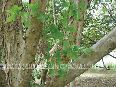 形態:落葉喬木,高達20米。樹皮暗褐色,薄條片狀剝落。小枝細,幼時有短柔毛,后變無毛,稍有白粉。葉呈倒卵狀三角形、三角形或橢圓形。葉常3淺裂,裂片三角形,近于等大而呈三叉狀,有時不裂,長4~10cm,寬3~5cm,基部圓形或寬楔形,3主脈,裂片全緣,或上部略生有淺齒,表面深綠色,無毛,背面有白粉,幼時有細柔毛。發葉后開花,花雜較性,黃綠色,子房密生長柔毛;頂生傘房花序,有短柔毛。翅果棕黃色,兩翅呈鐮刀狀。果核部分兩面凸起,有脈紋。兩果翅張開成銳角或近于平行;ㄆ4~5月,果熟期9~10月。 分布:主產長江中下游各省,北到山東,南至廣東、臺灣均有分布;日本也產。垂直分布一般在海拔1000米以下之山地及平原,多生于山谷及溪溝兩旁。 習性:為暖帶樹種,弱陽性,稍耐蔭,喜溫暖濕潤氣候及酸性、中性土壤,較耐水濕;有一定耐寒能力,在北京可露地越冬。在適生地區生長尚快,壽命約1000年左右。萌芽力強,耐修剪;根系發達,根萌性強。 觀賞特性及園林用途:本種樹姿優雅,枝葉茂密,干皮美麗,春季花色黃綠,夏季濃蔭覆地,入秋葉色變為暗紅,頗為美觀,宜作庭蔭樹、行道樹及護岸樹栽植。在湖岸、溪邊、谷地、草坪配植,或點綴于庭廊、山石間都很合適,是良好的園林綠化樹種和觀葉樹種。其老樁常制成盆景,耐修剪,主干扭曲隆起,頗為奇特。江南一帶有栽培作綠籬。 雞爪槭——槭樹科槭樹屬