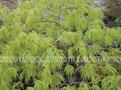 形態:灌木,葉掌狀深裂幾達基部,為7~11深裂,裂片狹長又羽狀細裂,具細尖齒。羽毛楓葉子和雞爪槭、紅楓的不一樣,直接可以分辨出來;樹冠開展而枝略下垂,通常樹體較矮,秋葉深黃至橙紅色。 分布:在我國河南至長江流域一帶園林中廣為栽植。 習性:弱陽性,耐半陰,喜歡溫暖濕潤、氣候涼爽的環境,喜光但怕烈日,屬中性偏陰樹種,夏季遇干熱風吹襲會造成葉緣枯卷,高溫日灼還會損傷樹皮,羽毛楓雖喜溫暖,但尚是比較耐寒的,在黃河流域一帶,冬季氣溫低達-20℃,只要小環境良好,仍可露地越冬。至于黃河以北,則宜盆栽,冬季入室為宜。羽毛楓在土壤pH值5.5-7.5的范圍內能適應,故在微酸性土、中性土和石灰性土中均可生長。 觀賞特性及園林用途:羽毛楓是重要的園林樹種。樹形優雅、姿態婆娑、葉色艷麗,十分惹人喜愛。其中不少還是色葉樹種。羽毛楓已是園林造景中不可缺少的觀賞樹種,常用于庭院觀賞或盆栽,羽毛楓無論栽在何處,都引人入勝。