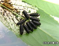 4 卷葉:有些害蟲為害后會使葉片產生卷曲現象,如榆卷葉蚜、海棠卷葉蚜、海桐蚜等;而有些害蟲則有卷葉食害的習性,如棉大卷葉螟、金鐘卷葉蛾等能把葉片卷成散的筒形;薔薇卷葉象蟲、沙樸卷葉象蟲能把葉片卷成實心筒狀;柳麗細蛾能把葉片卷成棕子狀等。