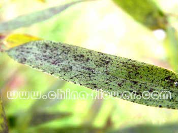煤污病主要危害植物的葉片,也危害嫩枝、花器等部位。發(fā)病初期在葉面、枝梢表面上形成圓形黑色小霉斑,有的沿主脈擴展,后擴大連片,使整個葉面、嫩梢上布滿黑霉層,形成較厚的黑色或黑褐色的煤煙狀層,嚴重時形成黑色霉層,有時在干燥條件下霉層開裂剝落。由于煤污病病菌種類很多,同一植物上可染上多種病菌,其癥狀上也略有差異。呈黑色霉層或黑色煤粉層是該病的重要特征。濕度大時發(fā)病重,盛夏高溫停止蔓延,夏季雨水多,也時有發(fā)生。