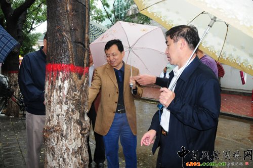 教授們親臨防治現場,先后察看了振興路、國槐街等地的病蟲害防治情況,并認真詢問了近年來我市園林植物病蟲害的防治工作,詳細解答了病蟲害防治的難點問題。經過實地考察和深入了解,對我市的防治工作給予了充分的肯定。教授們認為,濮陽市在防治園林病蟲害方面,思維具有前瞻性,有計劃、有措施、有效果,防治工作扎實。對病蟲害防治生物化研究發展迅速,人才多,水平高,在全國尚不多見。并就我市合歡枯萎病、國槐銹色粒肩天牛的防治難點提出了自己的看法。