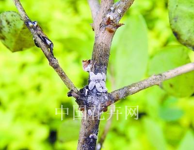 防治方法:(1)冬春徹底清除落葉并燒毀,可大大減少蟲量;用硬毛刷刷除粗皮縫和翹皮中的卵囊。(2)在第一代害蟲生長期,對其噴藥兩次,間隔10天左右,效果顯著。在各代若蟲危害期還要噴藥防治,所用藥劑有毒蚧、樂斯本、蚧死凈等殺蟲劑,噴藥要均勻,噴藥時加0.1%中性洗衣粉,可增加藥效。