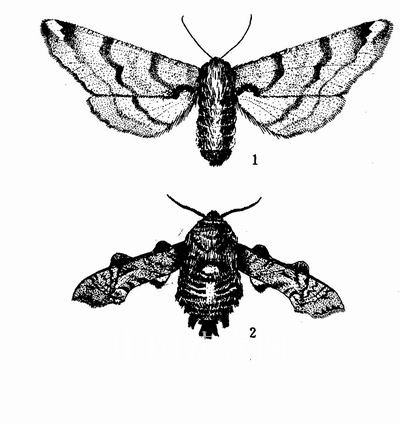 桑褶尺蛾圖例:1、雌成蟲2、雄成蟲