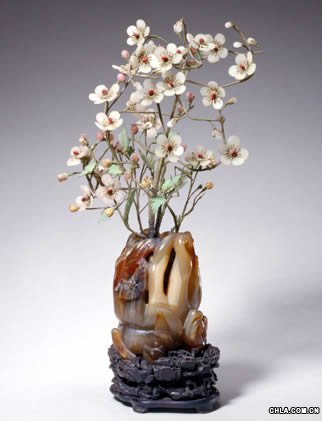 料石梅花盆景,清,造辦處造,通高30.5cm。清宮舊藏。