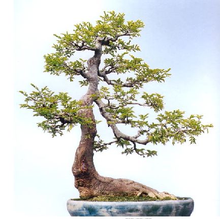 樹形:樸樹盆景適于制成直干式、斜干式、曲干式、臥干式或附石式等形態(tài)。枝葉可以扎片或修剪成饅頭狀圓片,也可加工成自然樹形。